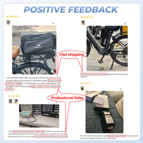 - Fast Shipping and Professional ServiceCustomers praise the “fast shipping” and “professional sales” shown in the feedback. When you need a high - capacity lightweight rear rack battery for e - bike backup urgently, ChamRider delivers. Whether replacing a battery for a delivery e - bike (as an economical dual rear rack battery for delivery e - bike) or adding a spare, the prompt service ensures you’re never left stranded.