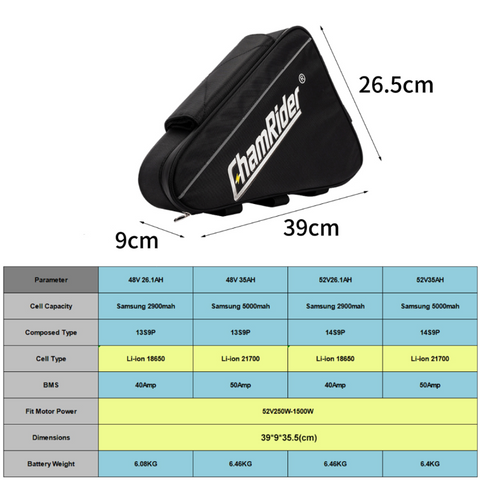 Upgrade your electric bike with the ChamRider Long-Lasting Small Triangle Battery, designed for riders who need a compact but powerful energy source. Built with high-quality Samsung 21700 cells, this battery delivers outstanding performance at 48V or 52V, supporting motors from 2000W to 3000W.