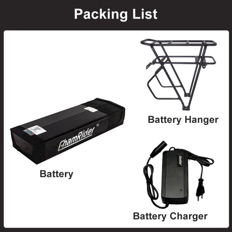 The Original ChamRider Rear Rack E-Bike Battery delivers powerful and dependable energy for a wide range of electric bikes. Available in 36V, 48V, and 52V options with capacities from 25Ah to 35Ah, this battery is designed to provide long-lasting performance for commuting, mountain biking, and delivery tasks.